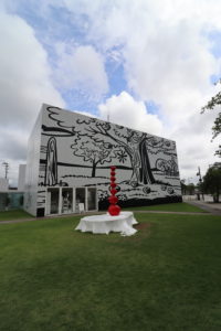 設計は西沢立衛氏で他にもたくさん美術館を設計され金沢の21世紀美術館も有名です。この建物は大小の箱体がガラスの廊下でつながり、分断された部屋毎に展示があるのでまるでいろんな家に入っていくような感覚です。作品はどれも驚かされるものばかりで時間を忘れるほど楽しく、また建物の外や道路向かいの広場にも展示があり日常的にアートに触れることができます。この通りは日本の道・百選にも選ばれたそうで街路樹が立ち並びひときわ綺麗で、まるで町と建物とアートが一体になっているような雰囲気でした。