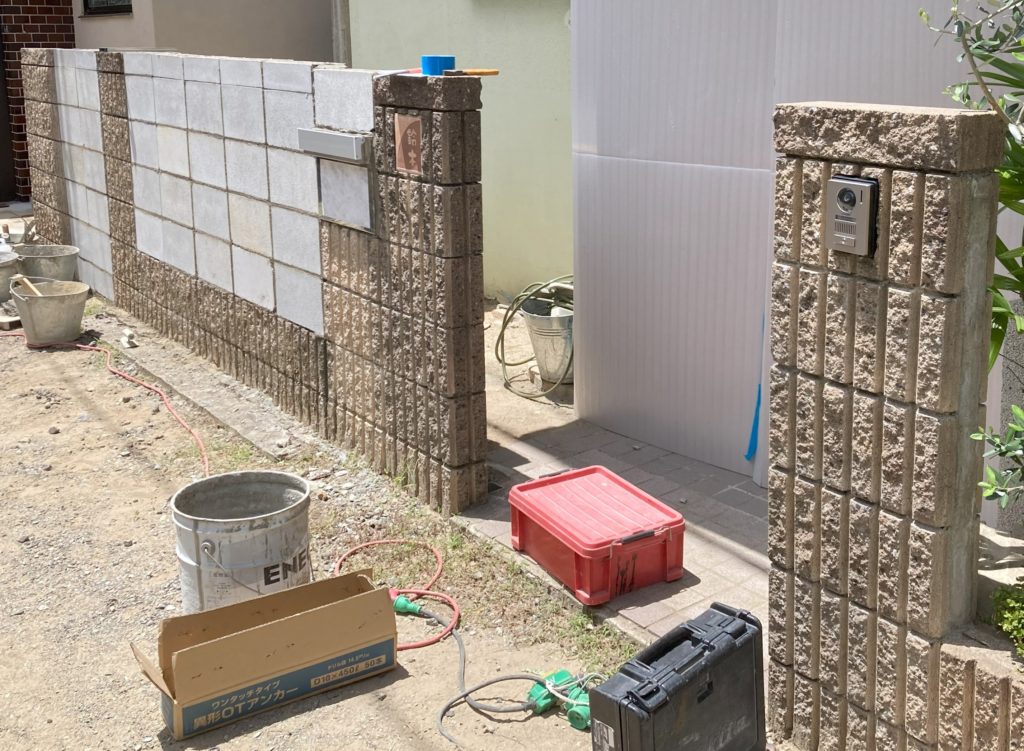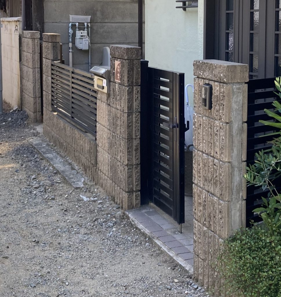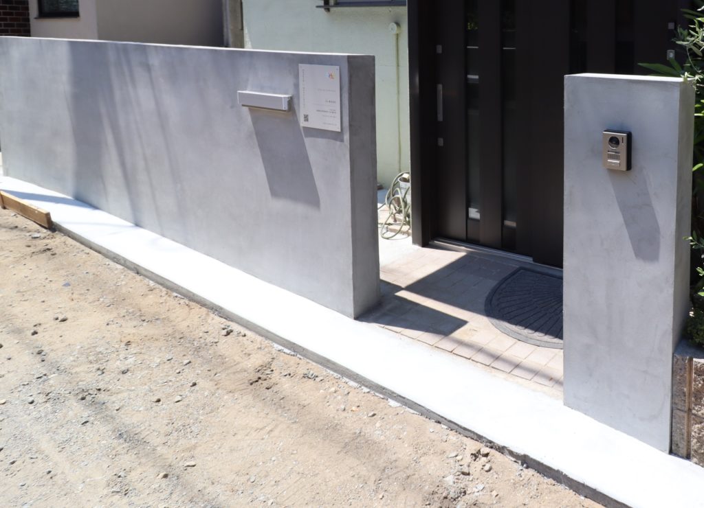 エクステリア=外構のやり替えは大掛かりな工事になる事が多いですがちょっとしたアイディアで機能や印象を変える事も出来ます。今回は既存のリブブロック塀をそのまま残し、フェンスがあった部分を埋めて凹凸の無い塀に変えました。敷地の中が見えにくくなった上にモルタル仕上げがとってもカッコいい外構に生まれ変わりました。